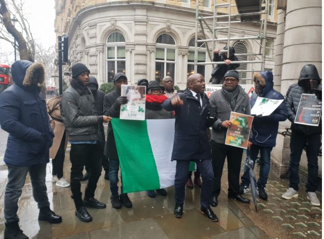 Speaking through its convener - Dr Wilson Diriwari during a protest under the bad weather at 1:00pm (London time) at Nigerian High Commission in London, the group accused the incumbent government of President Muhammadu Buhari of unleashing fear and terror on political opponents.