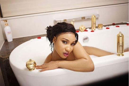 Tonto Dikeh stripped down and got into a bathtub for a promotional photoshoot.