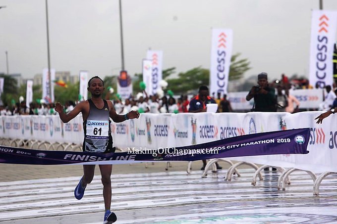 The moment Sintayehu Legese crossed the finish line to win the 2019 #LagosCityMarathon. He also became 50 thousand dollars richer. Bag, secured.💰#AccessTheLife pic.twitter.com/1DdFmGEV2I — Access Bank Plc (@myaccessbank) February 2, 2019