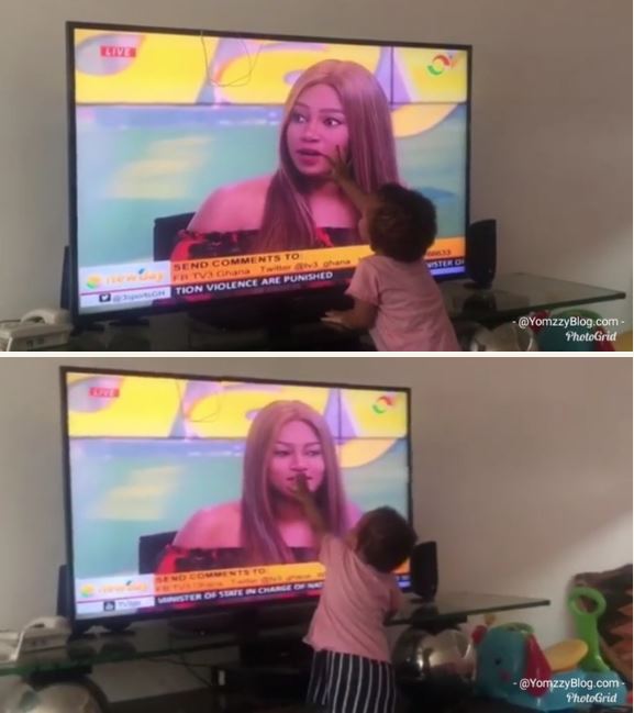 Ghanaian actress, Yvonne Nelson has shared a video of her daughter, Ryn Roberts' reaction to seeing her on TV on Wednesday morning during an interview.