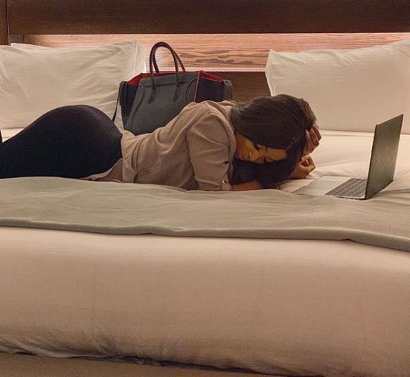 The controversial relationship adviser and divorce posted a picture of her seductively lying on her bed with her bum protruding through her skirt.