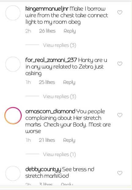 The controversial slay queen, got backlash from men who were surprised with the way the marks were. Some even resorted into calling her names and queried if she's from the Zebra family.