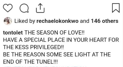 "The season of love!! Have a special place in your heart for the less privileged. Be the reason some see light at the end of the tunnel," she said.