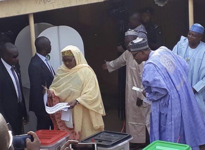 The Moment President Buhari Tried To Confirm Who Aisha Voted For (Photo)