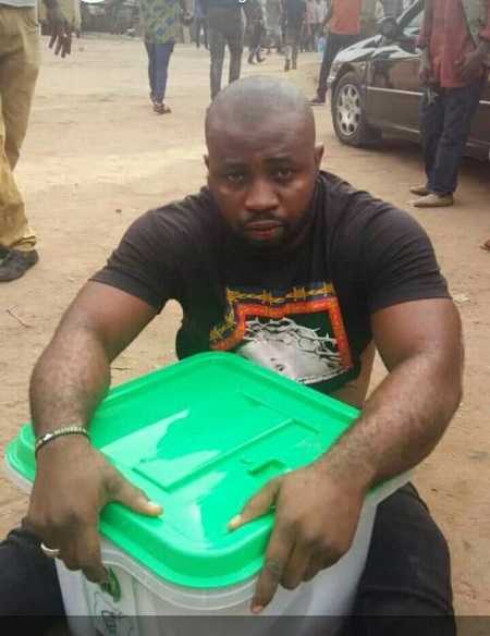 A political thug was apprehended with thumb printed ballots papers boxes at Ward 6 in Okpoko, Ogbaru local government area of Anambra state.