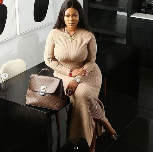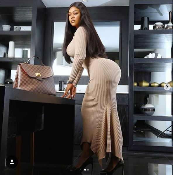 Daniella Okeke rocked a flowing gown as she posed with her massive backside which is her selling point.