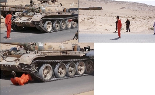 ISIS Blood-thirsty Islamic militants have released a sick new execution video showing a 19-year-old Syrian soldier being run over by an armoured tank.