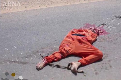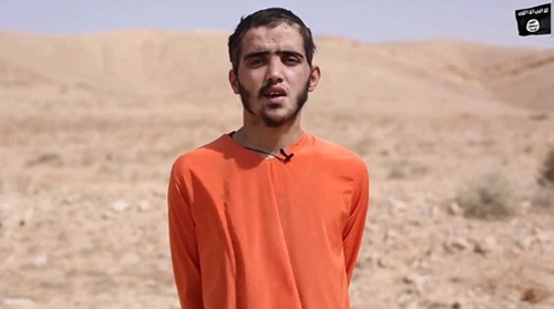According to the Syrian Observatory for Human Rights, the soldier, dressed in an orange jumpsuit, was forced to confess driving over the dead bodies of jihadis with a tank.