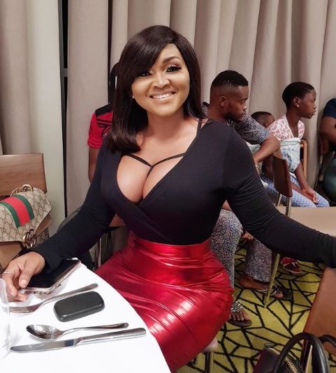 Nollywood actress Mercy Aigbe has shown off her beautiful body in cleavage-baring dress.
