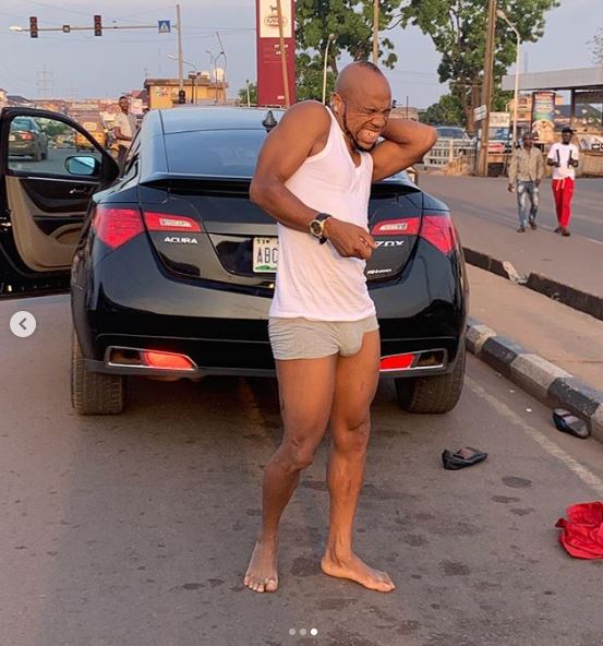 The character of Charles Okocha parked his multi million naira Acura car in public and ran out scantily-clad, talking gibberish with panties in his hands.