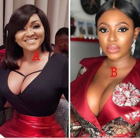 Cleavage-baring pictures of actresses, Mercy Aigbe and Yvonne Jegede have been trending online, with social media users picking their preferred celebrity.