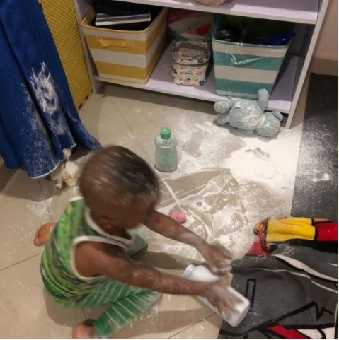 The actress revealed before she became a mum, she vowed to whoop her child if they ever did things like this. However, when she caught him, all she could do was join him after scolding him a little.