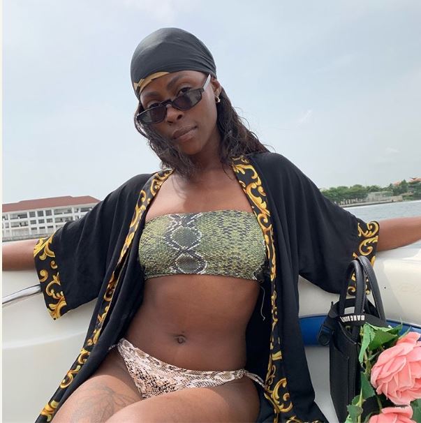 Former Big Brother Naija housemate, Khloe shared these photos of herself posing in a bikini with her backside on display.