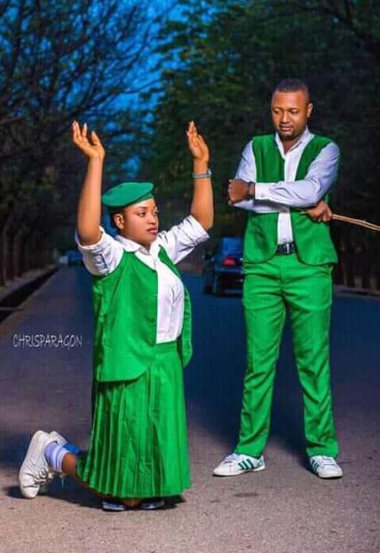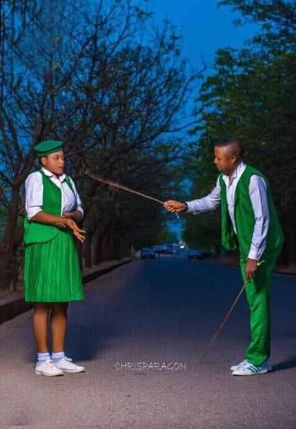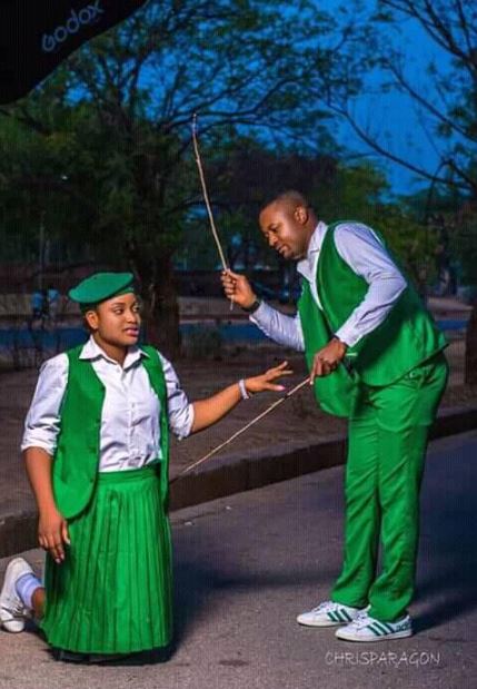 In these pre-wedding photos, the love birds decided to replicate the senior-junior tussle which is obtainable in government secondary schools.