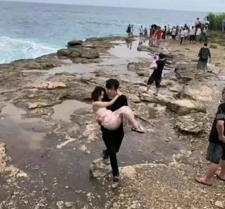 The video, posted on Chinese social media, was captured by a fellow traveller on Nusa Lembongan island.