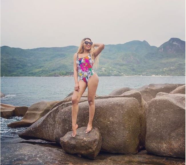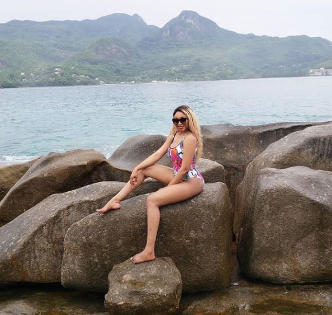 Super Eagles striker, Odion Ighalo's wife, Sonia who is currently in Seychelles shared these sexy photos of herself posing in a bikini at Beau vallon beach.