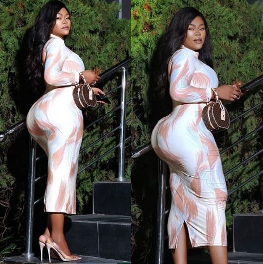 Daniella Okeke has got fans going gaga on a Monday morning with pictures of her massive backside shooting out in a flowing gown.