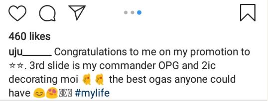 Uju Okeke has been promoted by the Nigeria Police Force and she took to her social media page to share the news.
