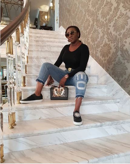 She recently stepped out for what looked like an interview in which she rocked jeans trousers and a befitting top.
