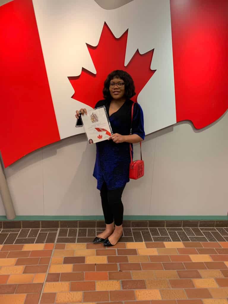 An ecstatic Nigerian woman has declared her intentions to burn her Nigerian passport after being granted Canadian citizenship.
