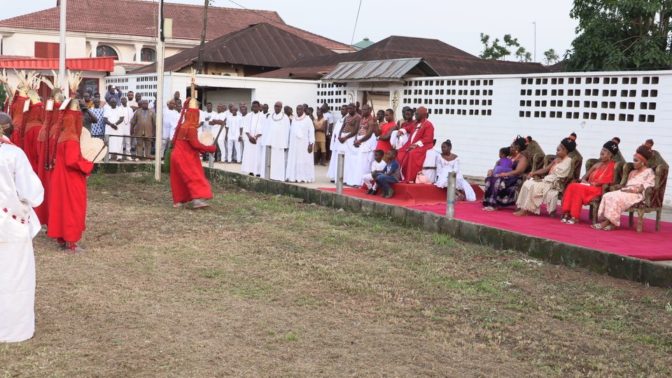 The ceremony among others is used to usher in peace, progress and development to the Kingdom as well as to ward-off evil, violence and untimely death from the Kingdom.