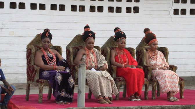 The four beautiful wives of Oba of Benin, Oba Ewuare II have been pictured all looking radiant at a traditional event.