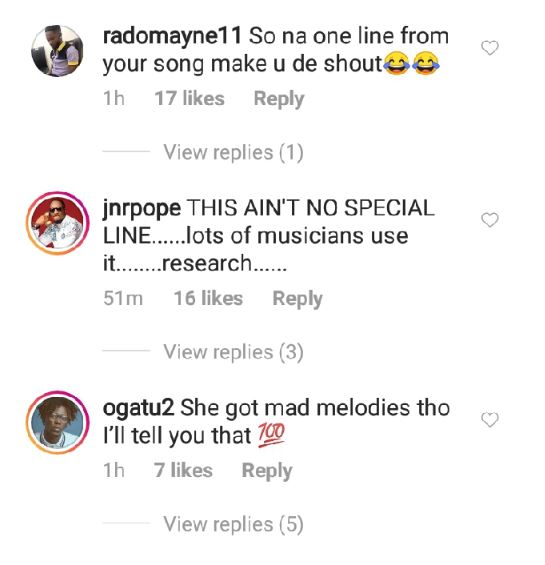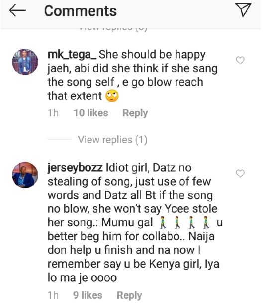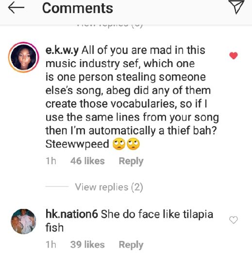 Furthermore, she also accused rapper, Ycee of stealing her lyrics for his hit song 'Juice' without giving credit.