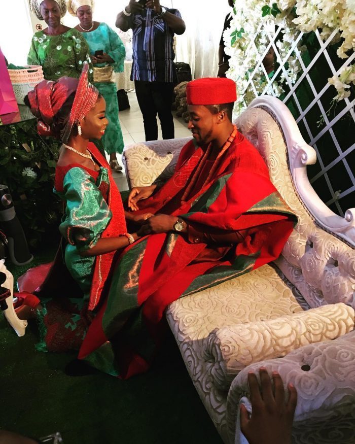 Photos have emerged from the traditional wedding ceremony of Nigerian actor, Akah Nnani to his beautiful bride, Claire.