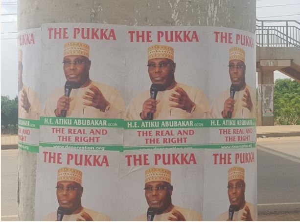 Some parts of the Federal Capital Territory, Abuja have been flooded with campaign posters of the presidential candidate of the Peoples Democratic Party.