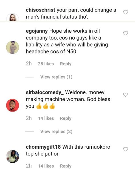She frowned at men who go about chasing girls to sleep with them instead of making money first before thinking of being intimate with girls.