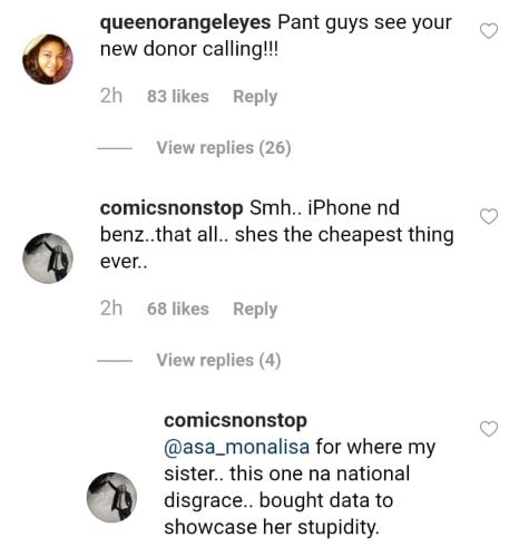 She said: "To guys that are expecting ladies to stand with them in times of poverty, I don’t roll with poor guys, please guys, before you toast any girl go and make money, If you don't have an Iphone or a benz and you dare approach me, I will not answer you.