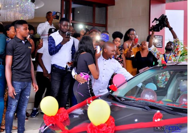 Juliet Onyinyechukwu Ogueze was forced to share some tears of joy when her man Engr Onyeka ThankGod proposed to her with a brand new car.