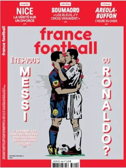 France Football have given a fresh perspective on the 'who is better' debate between Cristiano Ronaldo and Lionel Messi - with a drawing of them kissing.
