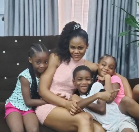 Nigerian top musician, Timi Dakolo's wife, Busola and their 3 kids in an adorable photo shared online.