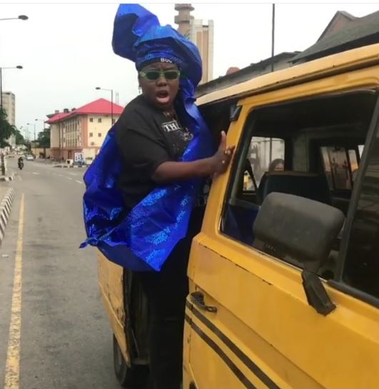 Sugar mummy of Lagos, Teni the entertianer was spotted on camera serving as a bus conductor in Lagos.
