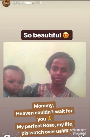 Author and Vlogger, Toke Makinwa took to her social media space to share a throwback photo with her late mother, Modupe.