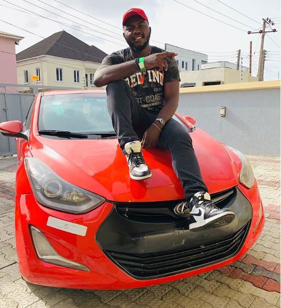 Sharing a photo of his manager sitting on a red brand new Hyundai that he got for him as a birthday gift, the rapper wrote;