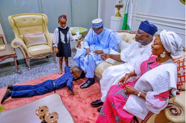 He captioned the photo "This seemingly little moment reminds me of what my mother never stopped emphasizing while we where growing up... “Respect for Elders”. Governor Ambode’s children prostrate to welcome the President to Lagos for the commissioning of Projects during his working visit to Lagos today!".