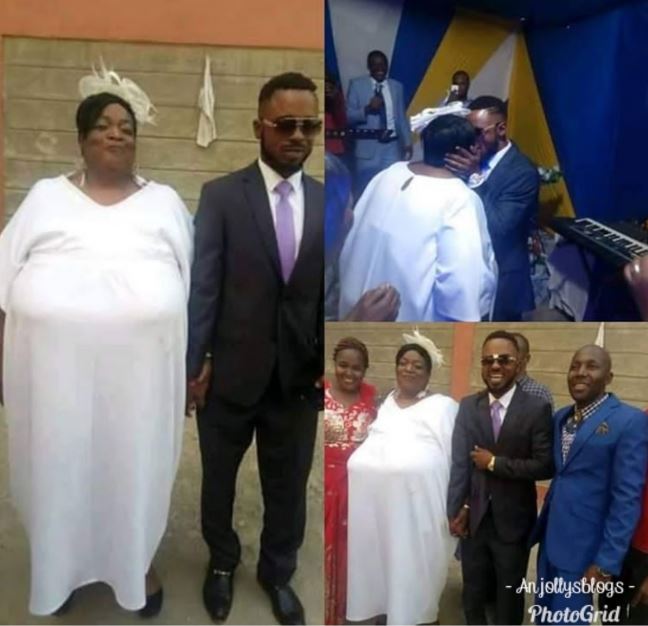 A young man appears to have bitten more than he can chew marriage-wise as he marries a woman who is at least times his size.