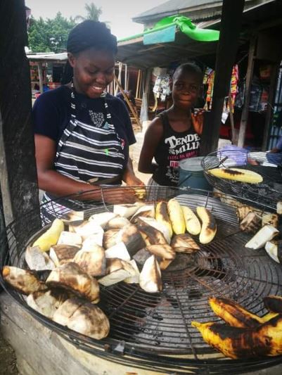 She is into the sale of roasted plantain called 'bole' as well as yam which she uses in financing her education.