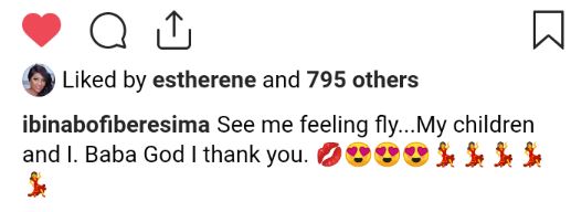 She wrote; "See me feeling fly...My children and I. Baba God I thank you"