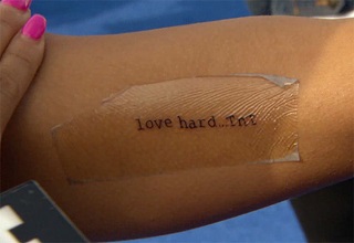 The fresh tattoo on her left arm reads, "love hard ...TnT", which reportedly represents (Chris)Tina and Tunechi (Wayne's nickname).