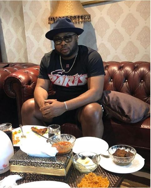 Former husband of actress Tonto Dikeh, Olakunle Churchill seems undisturbed or concerned amidst his ex-wife Tonto Dikeh's outburst as he was seen giving himself a good dinner treat.