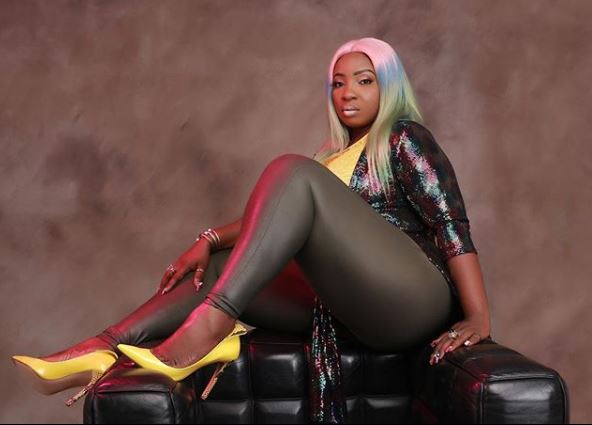 She can also boast of a chocolatey skin and flat tummy not to talk of her gigantic bum.
