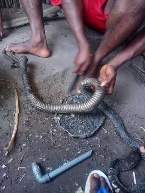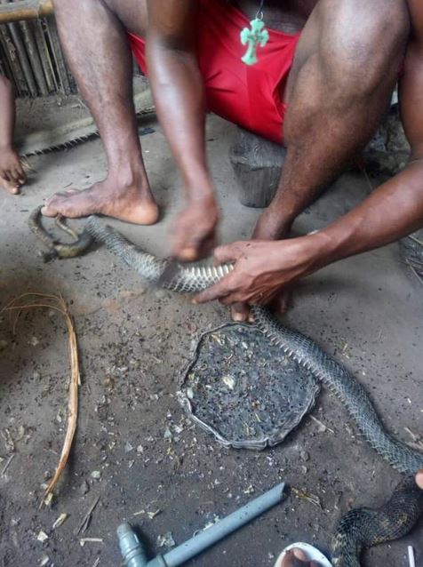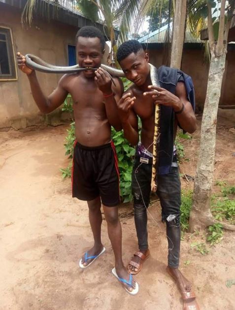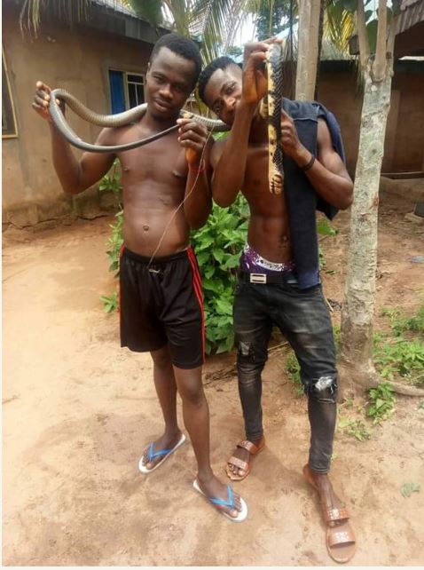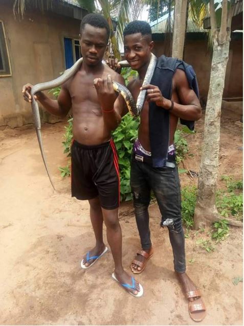 A man from Benin, Edo State, who lives in Lagos and his friend killed a snake.