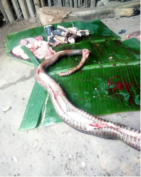 These young men proudly shared their pictures on social media after killing a long snake which they hung around their necks.