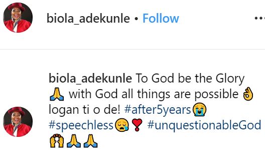 A Nigerian actress, Biola Adekunle has welcomed a baby after waiting for about five years following her marriage.