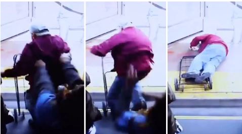 The bus surveillance video released by police on Tuesday shows Fournier starting to exit the bus with a large foldable cart when Bishop shoves him from behind with both her hands. Fournier flies through the bus doors and lands face-first on the sidewalk and his cart.