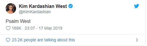 The reality star posted a picture of the child, delivered via a surrogate, with the caption “Psalm West”.