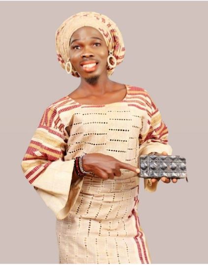 Comic Yoruba actor, Ijebuu who recently bagged a brand ambassador deal, dressed up as a lady wearing an Aso Ebi attire.